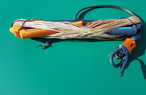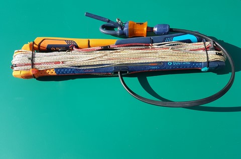 Pour dérouler vos lignes en un temps record, vous pouvez accrocher votre chicken loop au mousqueton de votre KiteHook et tirer vos lignes en les tenant par leur extrémité afin qu'elles se "débobinent".