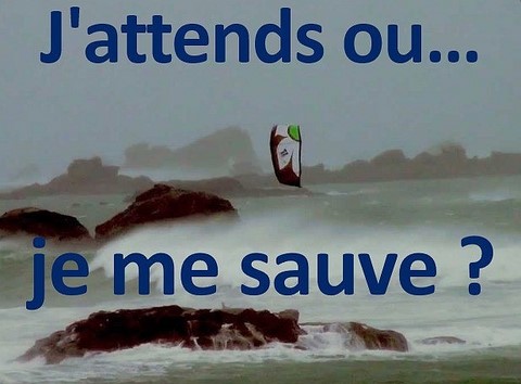 En cas de doute, mieux vaut rester dans l'eau loin de tout obstacle. Si le vent devient trop violent pour naviguer en sécurité, il suffira de mettre son aile en bord de fenêtre avec une l'oreille de l'aile en contact avec la surface de l'eau pour attendre que le grain passe. C'est la même technique que les voiliers qui se mettent "à la cape" dans le très gros temps.