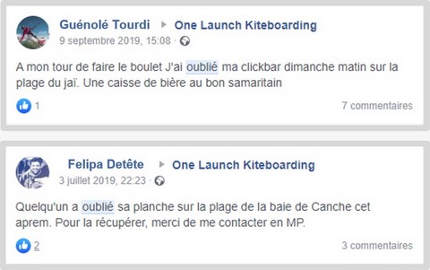 Dans la même catégorie, après votre session une fois de retour chez vous, au moment d'une bière méritée, vous découvrez que vous avez laissé sur la plage votre pompe, votre planche ou votre aile.
