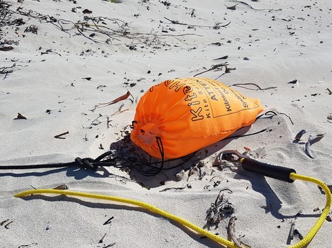 Vous le savez si vous avez lu les Instructions d'Utilisation, la principale fonction de leash secondaire (noir) est de permettre de désenfouir votre KiteHook facilement et sans avoir à creuser pour enlever du sable ou des galets (cf. astuce "Déterrer son KiteHook").