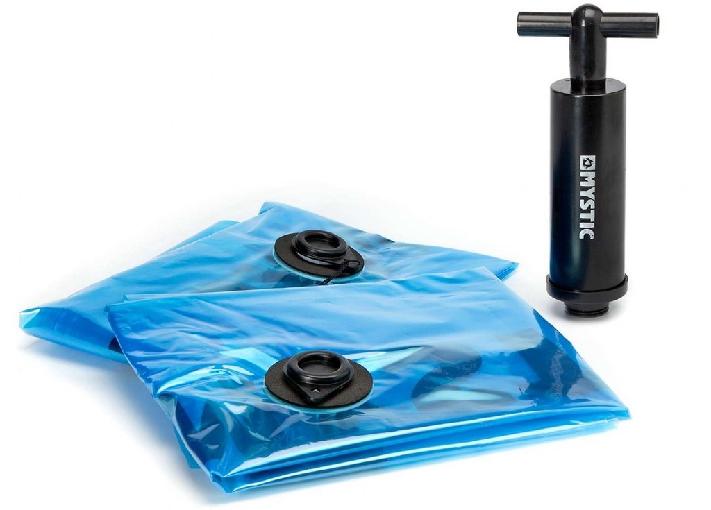 Il existe 2 catégories de sacs de compression : les sacs à sangles et les sacs sous vide. Ces derniers sont un peu plus efficaces en termes de compression, mais nécessitent une pompe. Les prix de ces deux modèles sont similaires. Vous les trouverez dans les shops de glisse et les grandes surfaces de sport pour des prix allant de 10 à 40€ environ. Personnellement, j'ai une préférence pour les sacs à sangles du fait de leur simplicité d'utilisation, évitant ainsi de transporter une pompe qui… occuperait une bonne partie de volume gagné. Certaines pompes kitesurf peuvent se connecter sur certains sacs sous vide, mais ça reste tout de même moins simple que de tirer sur une sangle.