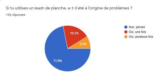 28% des utilisateurs de leash de planche ont eu un problème avec. Et si on regarde la bouteille à moitié pleine, cela fait presque 3/4 des utilisateurs qui n'ont jamais eu de problème… 😉