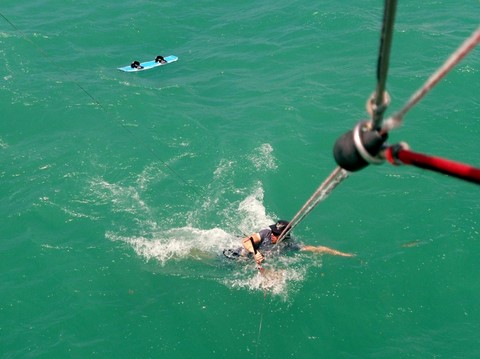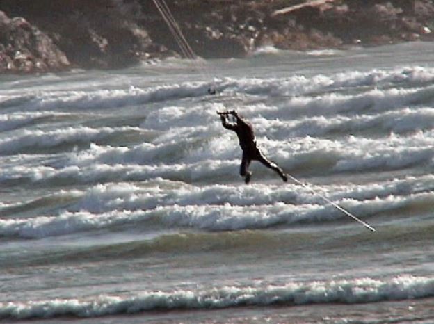 - J'estime que le leash à enrouleur ne présente que très peu de risque par rapport au bénéfice qu'il peut apporter aux débutants. Mais, je considère qu'il est préférable d'apprendre de suite la nage tractée, avant même de savoir tirer un bord, pour garantir autant que possible la récupération de sa planche. Malheureusement, beaucoup d'écoles zappent cette étape pour satisfaire le désir des stagiaires de naviguer rapidement (c'est vrai que l'apprentissage de la nage tracté n'est pas très fun). C'est une vision à court terme, car au final, le stagiaire sort de son stage en pensant qu'il va pouvoir se débrouiller seul et c'est lui qu'on retrouve en galère au milieu du spot, ou qui va acheter un leash, pour ne plus pouvoir s'en séparer ensuite.