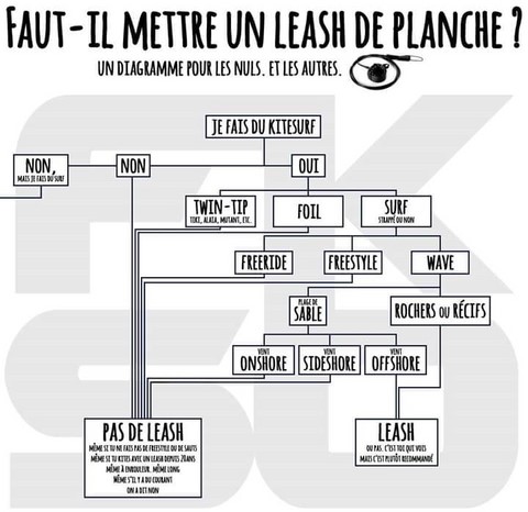 - Faut-il mettre un leash de planche ? (diagramme ci-dessous - source : Fun Kite Sud Ouest)